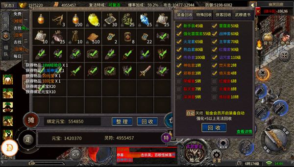 3.打开背包可使用自动分解与一键穿戴功能,快速管理装备与道具。
