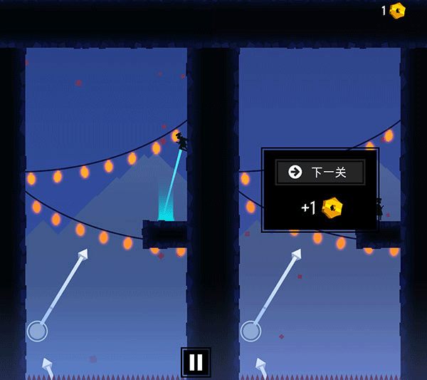 1、进入游戏后,通过屏幕左侧虚拟摇杆控制角色左右移动与跳跃。