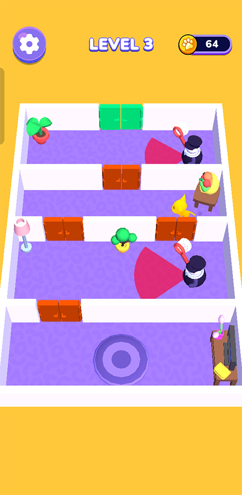 《猫咪逃脱游戏》是一款以猫咪为主角的迷宫冒险模拟器,玩家将化身一只灵动的小猫,在充满未知的旅途中躲避保安追捕,寻找出口赢得胜利。游戏将猫咪的敏捷与迷宫探索巧妙结合,带来紧张刺激的逃脱体验。