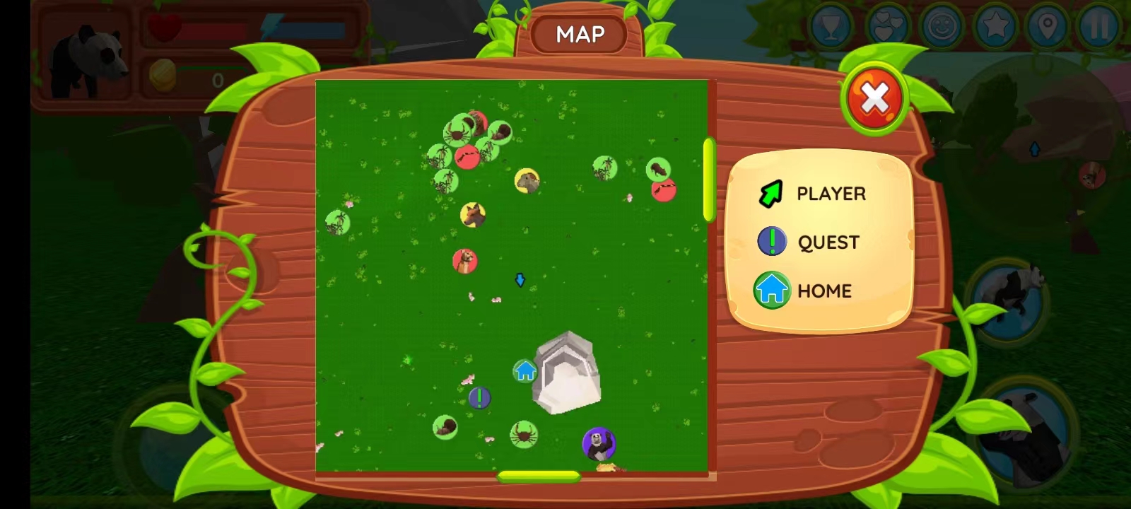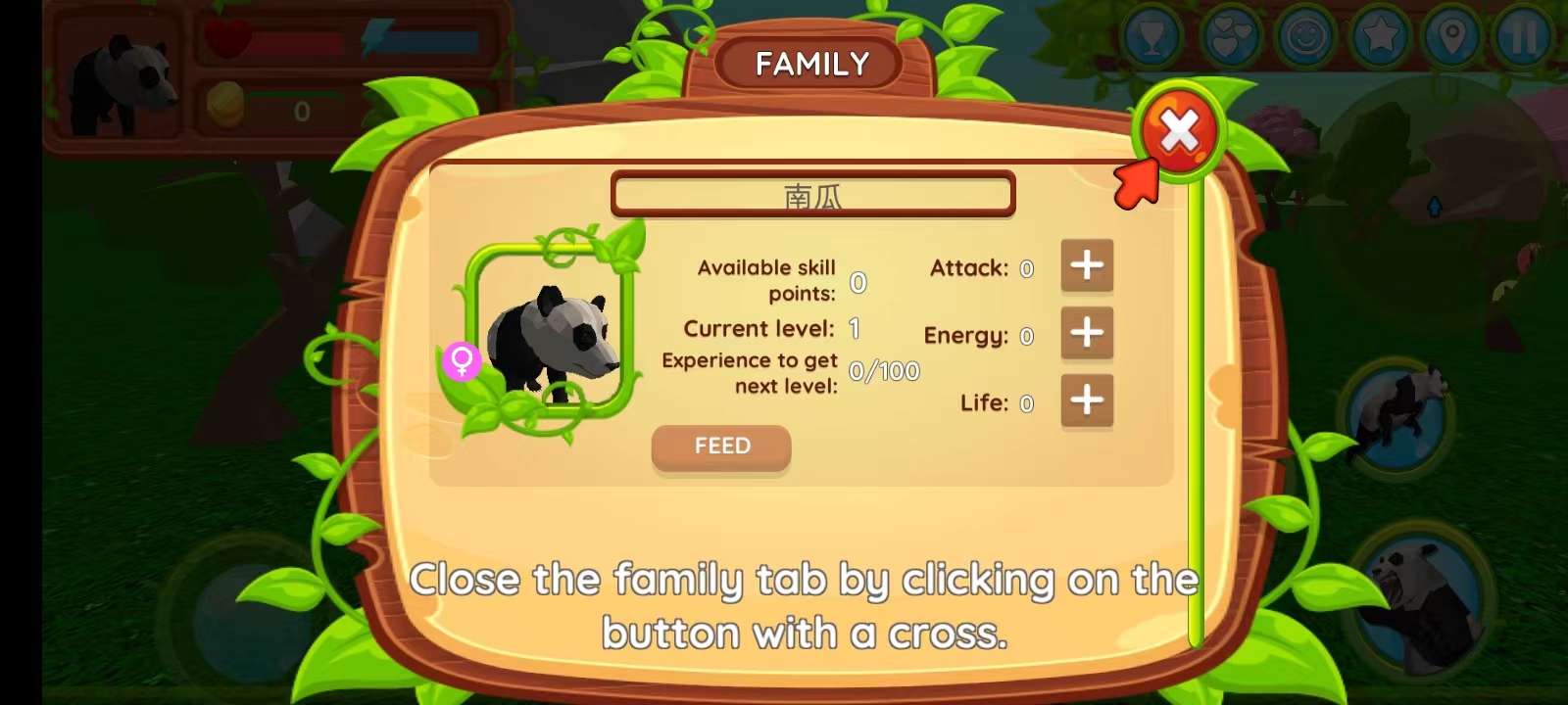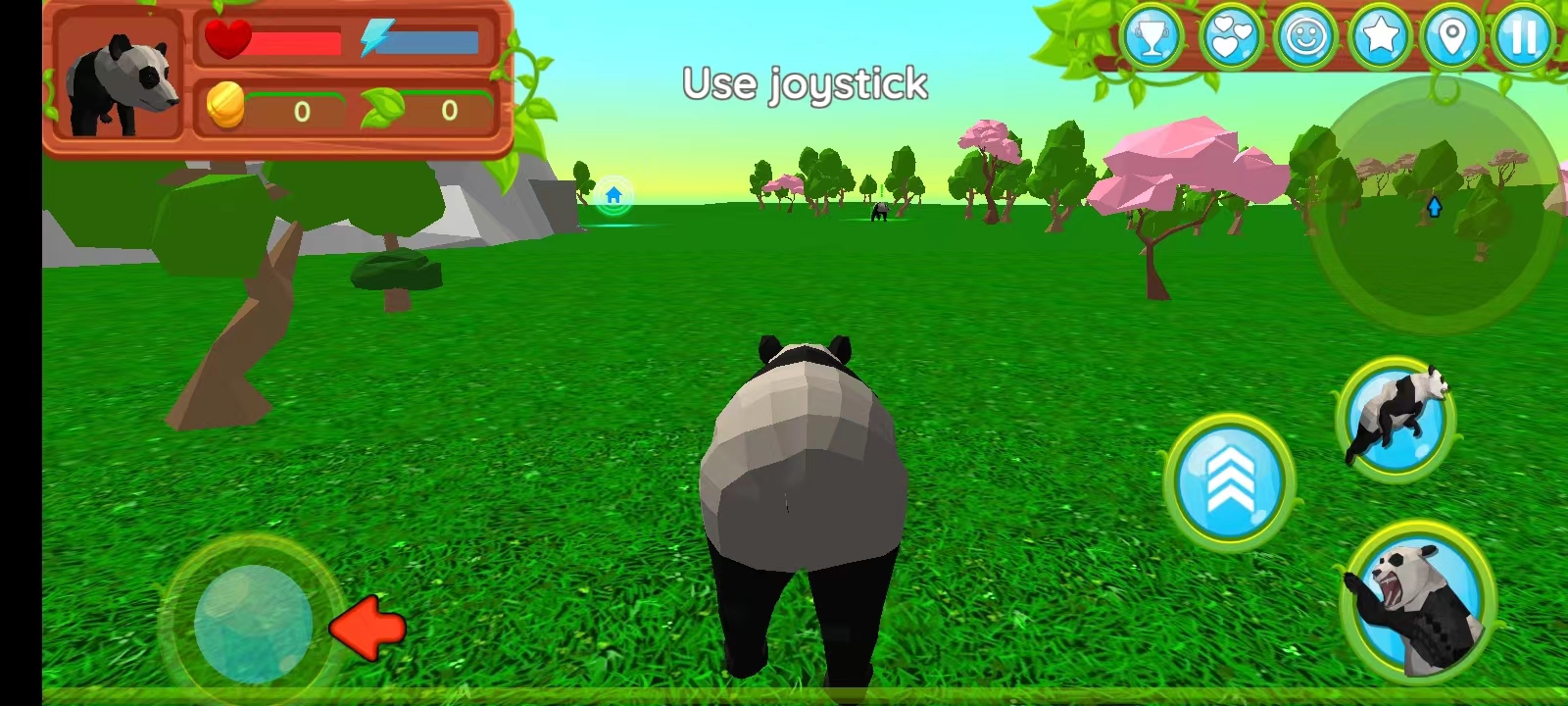 1.扮演熊猫在森林中自由探索,寻找食物和水源维持生存。