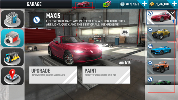 2.游戏收录了数十款造型炫酷的授权赛车,每辆车均拥有独立建模与真实数据。