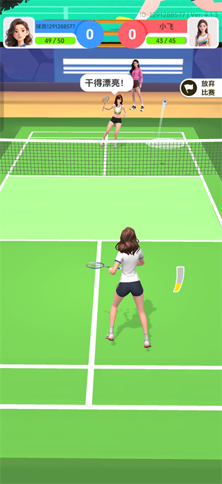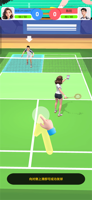 2. 对战界面中,手指在屏幕滑动即可控制角色移动,点击屏幕挥拍击球。