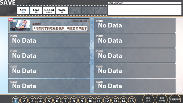 2、 在界面左上角点击菜单按钮可调出存档、读档及系统设置选项。