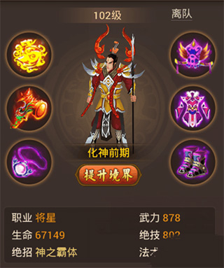 3) 通过点击屏幕上的角色或菜单,进行装备更换、技能升级和伙伴招募。