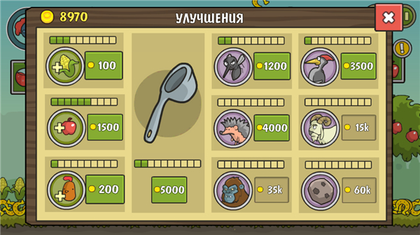 2) 摧毁场景中的植物和动物后,点击收集食物资源,用于提升英雄属性。