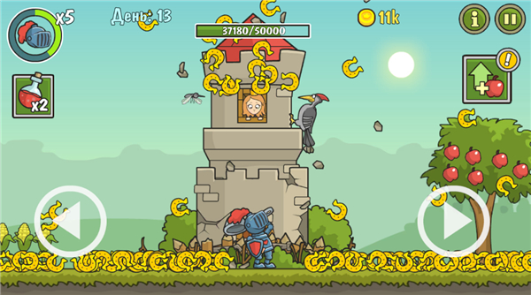 1) 进入游戏后,点击屏幕控制骑士移动,接近塔楼即可自动攻击并摧毁。