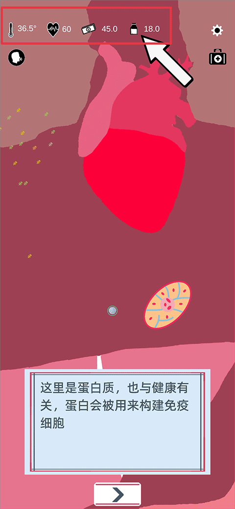 2、游戏以人体内部为世界观背景,玩家需指挥免疫细胞对抗多样病原体入侵。