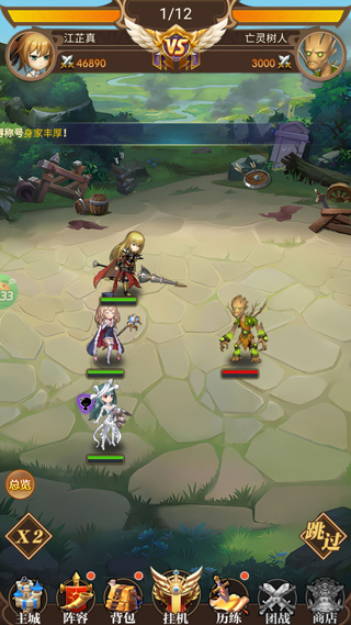 2) 在主界面点击“战斗”按钮即可挂机,系统自动进行回合制对战并发放奖励。