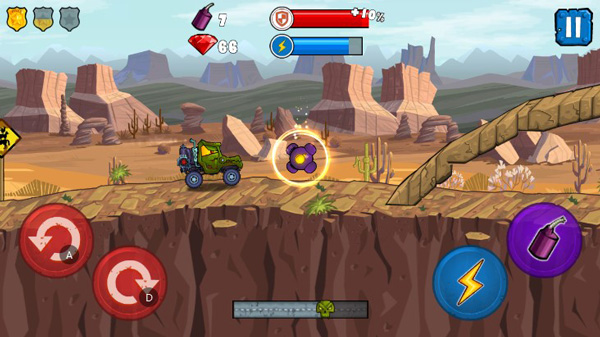 2.使用屏幕左侧虚拟摇杆控制车辆左右移动。