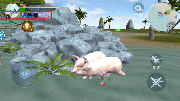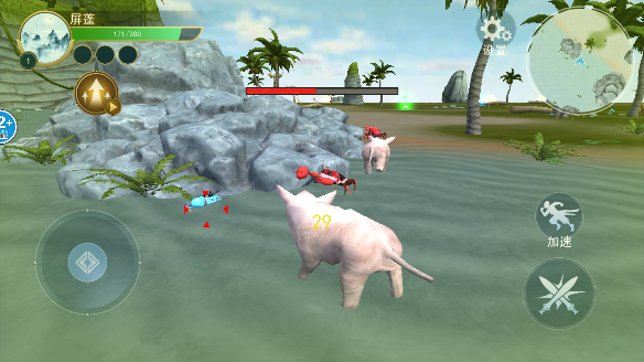 1. 进入游戏后通过虚拟摇杆控制异兽移动,点击攻击键自动瞄准附近生物。