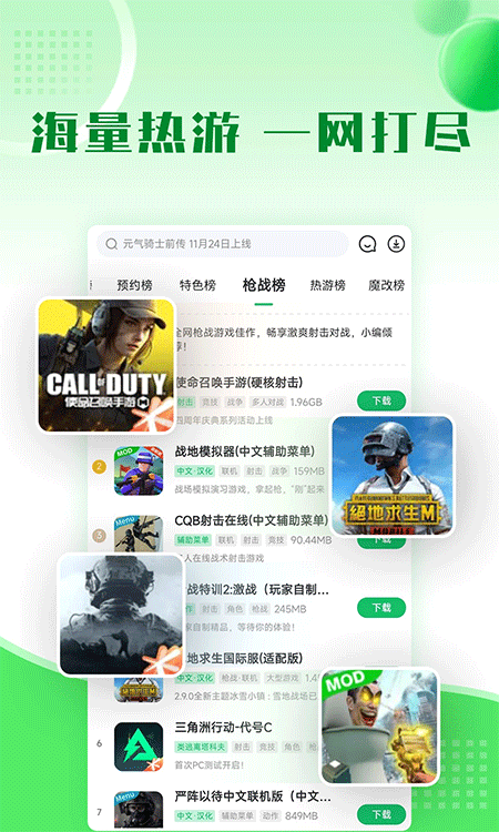1) 海量游戏资源库,无需四处寻找即可一键下载安装。