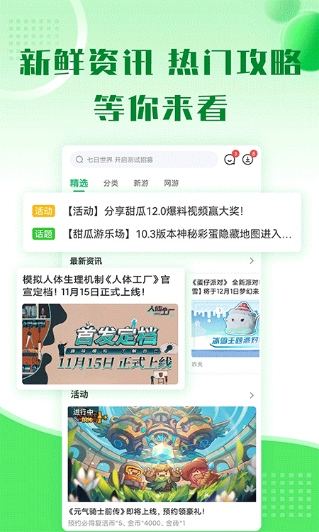 3) 在首页推荐或分类页面选择感兴趣的游戏进行下载。
