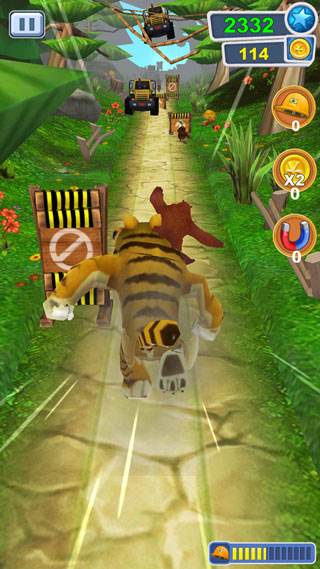 3) 每局结束后根据跑动距离和金币数量结算得分,解锁新角色与道具。