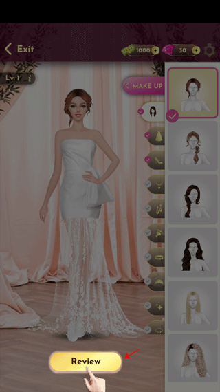 2、通过拖拽和点击为角色选择婚纱、头饰及妆容,操作直观。