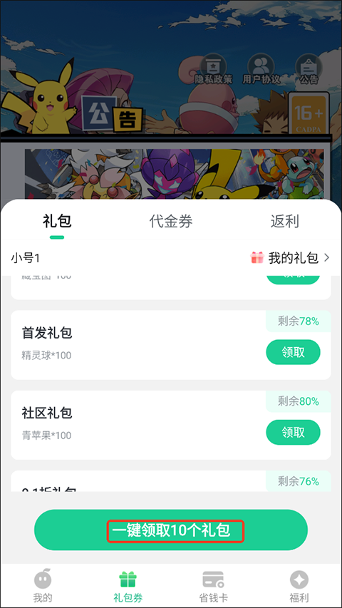 1. 下载安装后注册账号,新手引导送初始宝可梦。