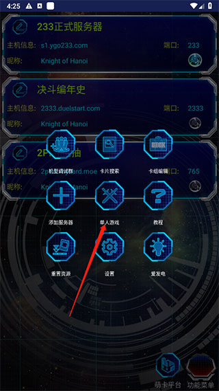 1) 进入主界面后点击“决斗”按钮,选择匹配模式或好友对战。