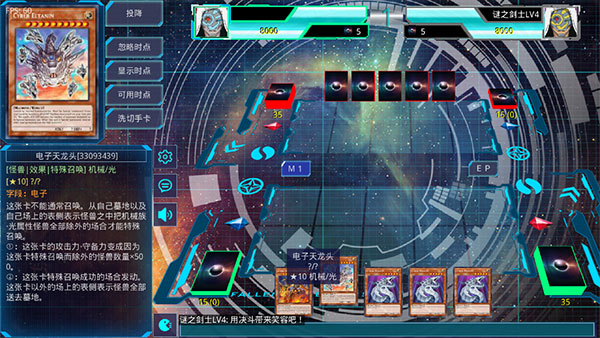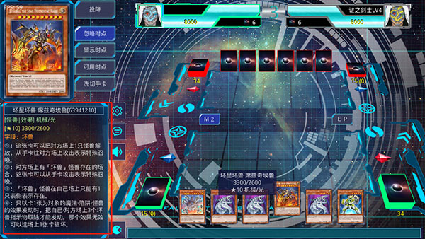 5) 每回合结束前点击“结束阶段”按钮,系统自动处理连锁效果。