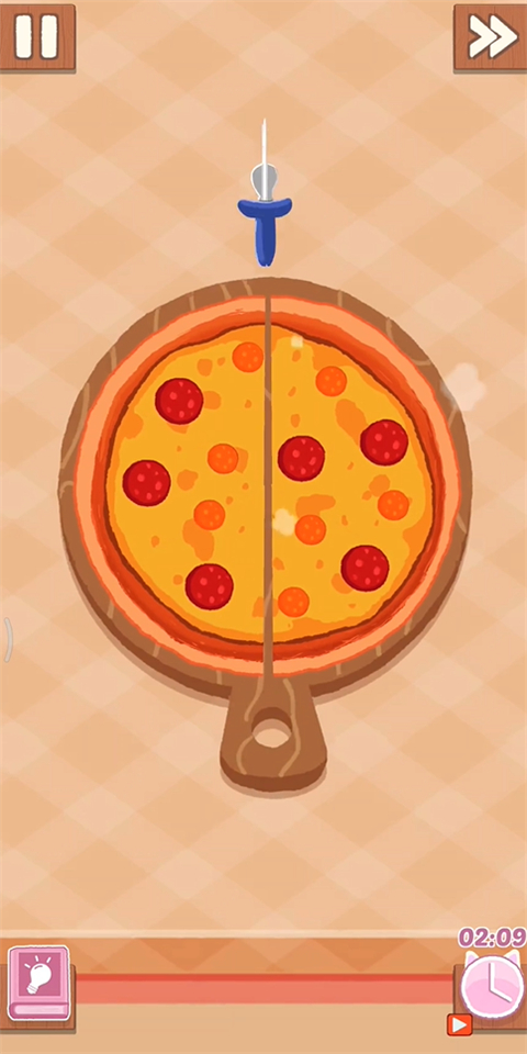 2、点击食材图标开始切配,按屏幕滑动方向完成切割动作。