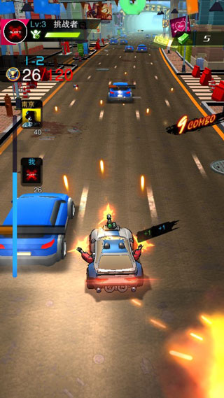 1) 独创“竞速+射击”玩法,在极速狂飙中实时瞄准开火,紧张刺激。