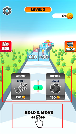 2、核心玩法是控制弓箭在跑道上持续前行,躲避障碍并攻击敌人。