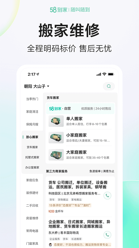 1.服务品类丰富,涵盖保洁、维修、搬家等数十种生活场景。