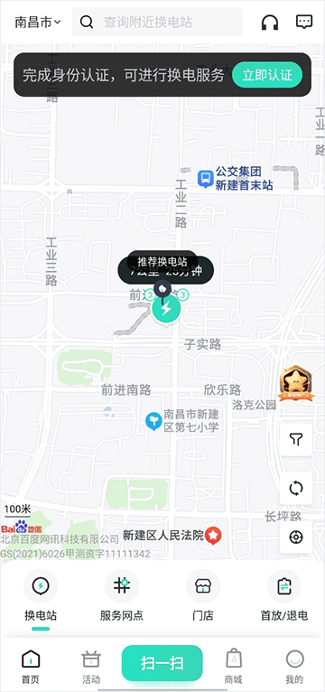 2、打开应用定位附近换电柜,扫描柜体二维码即可开柜取电。