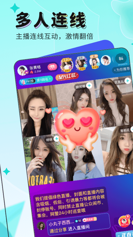 3. 平台主播颜值高,内容审核严格,氛围良好。