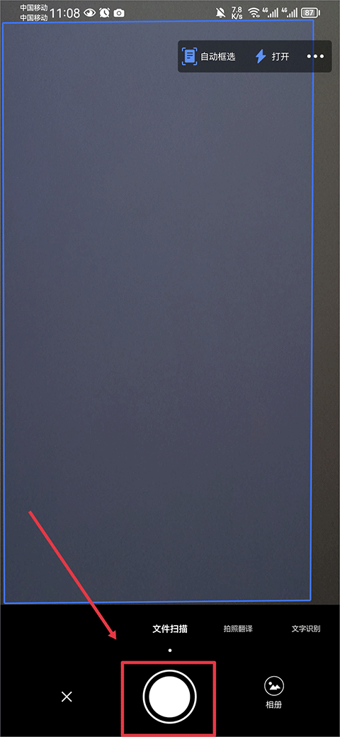 1、打开应用主界面,根据需求选择文档、证件或图片等扫描模式并对准目标拍摄。