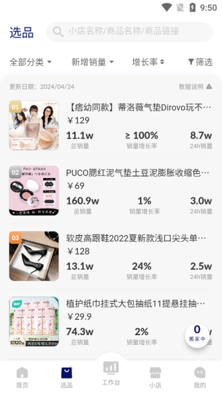 1、该应用定位为抖音电商生态内的专业数据分析工具,核心服务于商品选品与铺货流程。
