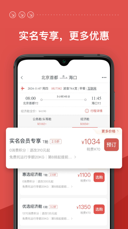 1.覆盖航线网络广泛,一个应用即可预订多家航司航班。