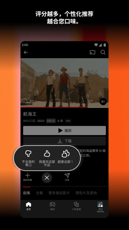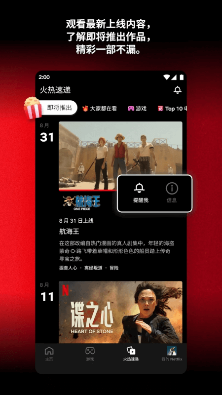 Netflix App是一款汇聚海量影视剧集的流媒体视频平台,用户只需订阅相应服务,即可畅享平台所有视频资源,并获得最高4K超高清播放体验。平台更新迅速,让用户第一时间追到最新剧集,是影迷追剧的优选工具。