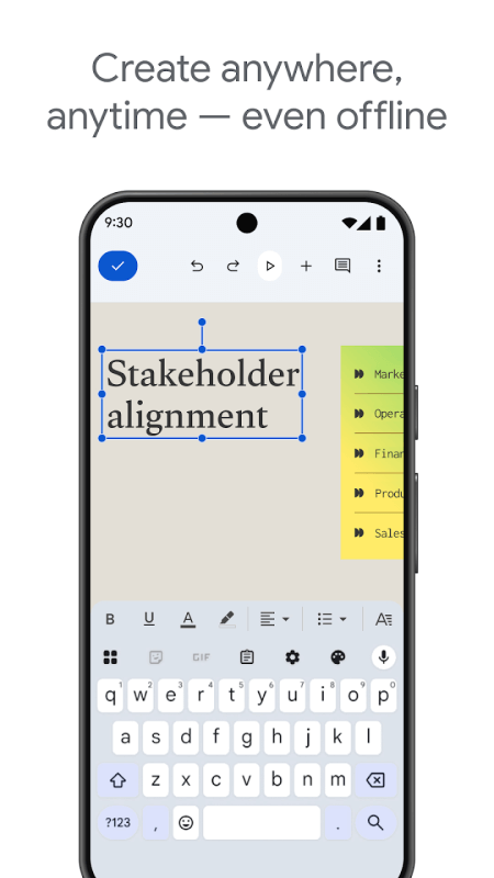 谷歌幻灯片app是谷歌官方专为移动端打造的幻灯片制作利器,让用户摆脱PC束缚,随时随地通过手机创建与编辑演示文稿。其界面延续谷歌一贯的极简设计,全程无广告打扰,带来沉浸式创作体验。