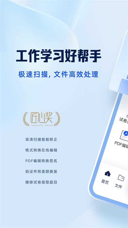 1.高清文件扫描:自动裁边并去除杂乱背景,生成清晰PDF或图片。