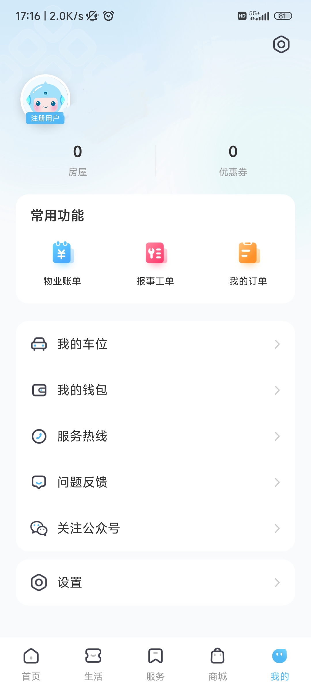 1. 下载安装后,点击“注册”使用手机号验证,填写房产信息完成业主认证。