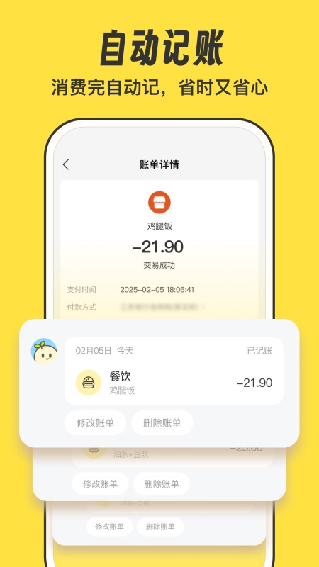 1) 极简操作让你十秒内完成一笔记账,节省日常时间。