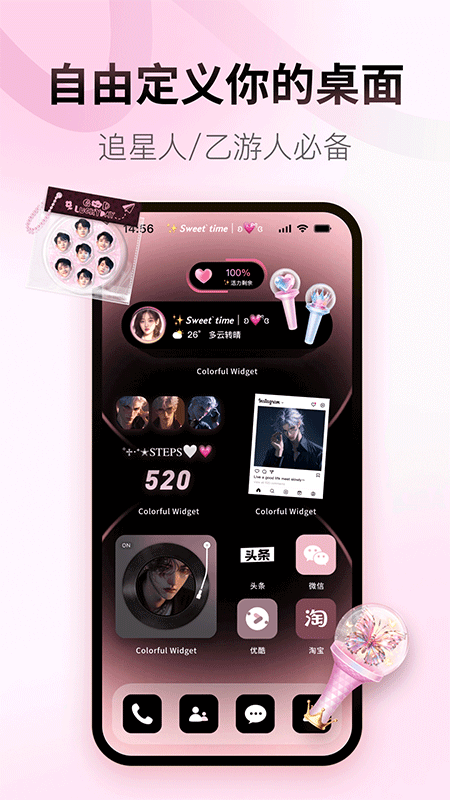 1、无需专业技能,即可快速美化手机桌面。
